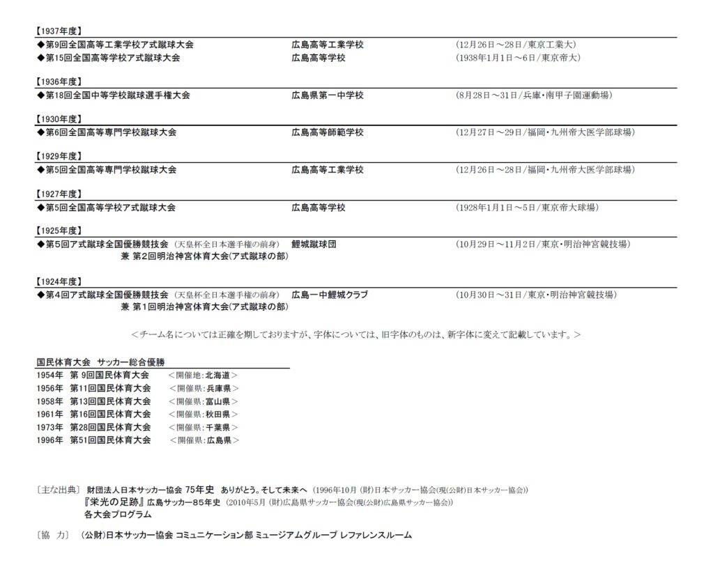 広島県サッカー協会が2024年に創立100周年を迎え、10月6日に記念式典が開催された。同時に広島県サッカー殿堂表彰が発表され、11名が受賞し、広島サッカースタジアム(エディオンピースウイング広島)内にある広島サッカーミュージアムに受賞者11名のレリーフが設置された。